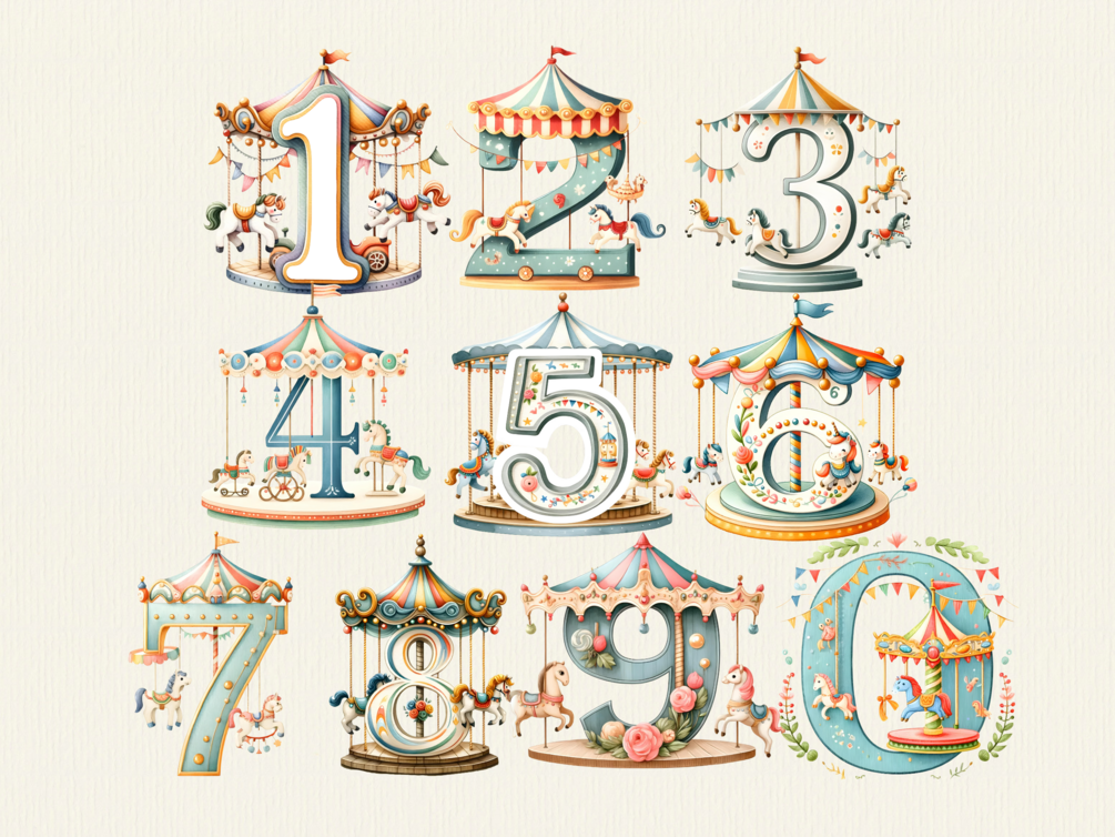 Add a touch of whimsy with our Watercolor Carousel Clipart! Perfect for nursery decor,and children's projects, this collection features charming merry-go-round designs. Instantly downloadable for easy, creative use in your digital and print projects.